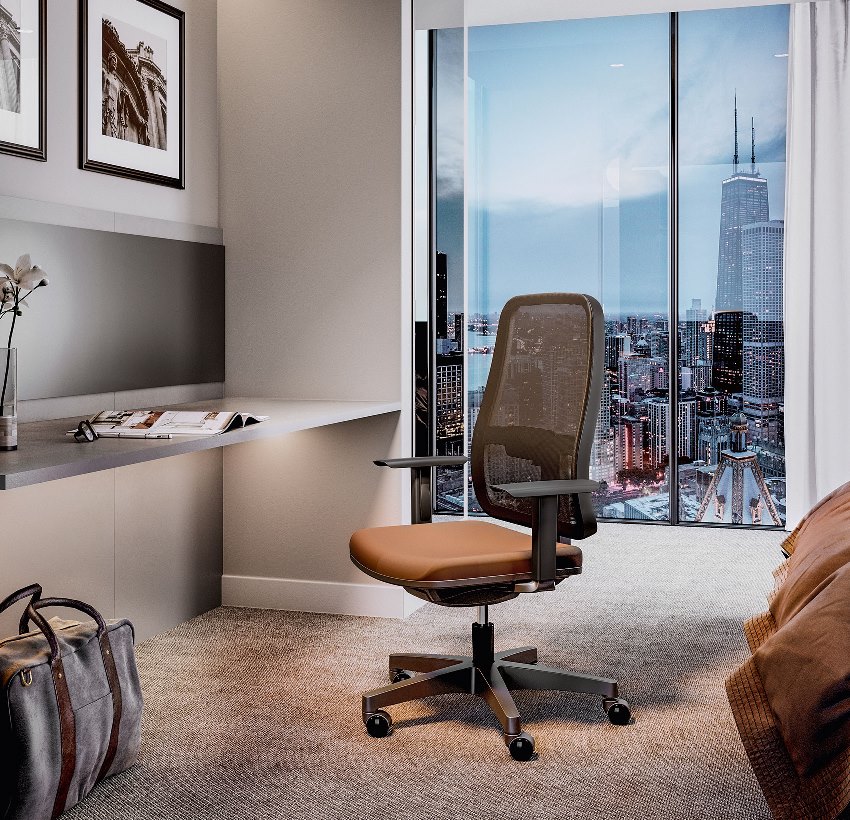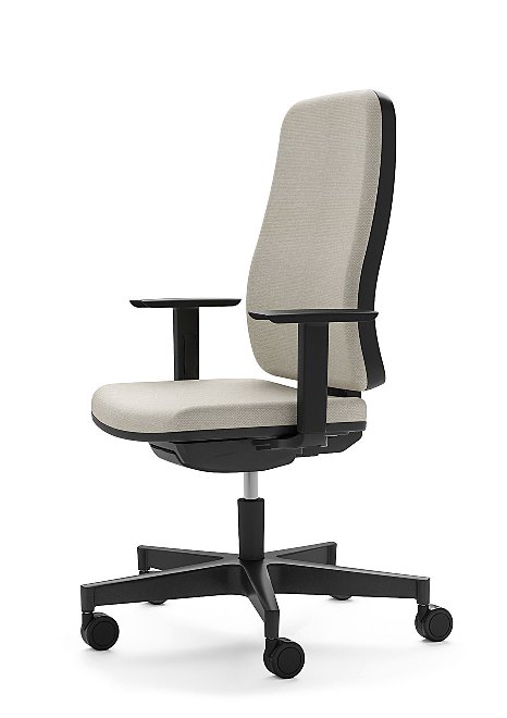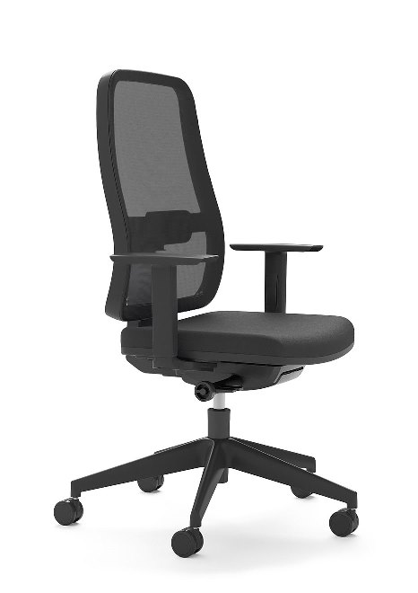 COSTA: Alta em rede preta ou estofada com apoio lombar regulável em altura ASSENTO: Revestido a espuma flexível BASE GIRATÓRIA: Piramidal MECANISMO: Syncron